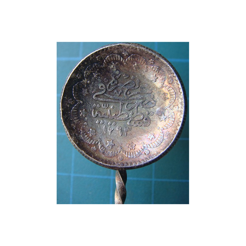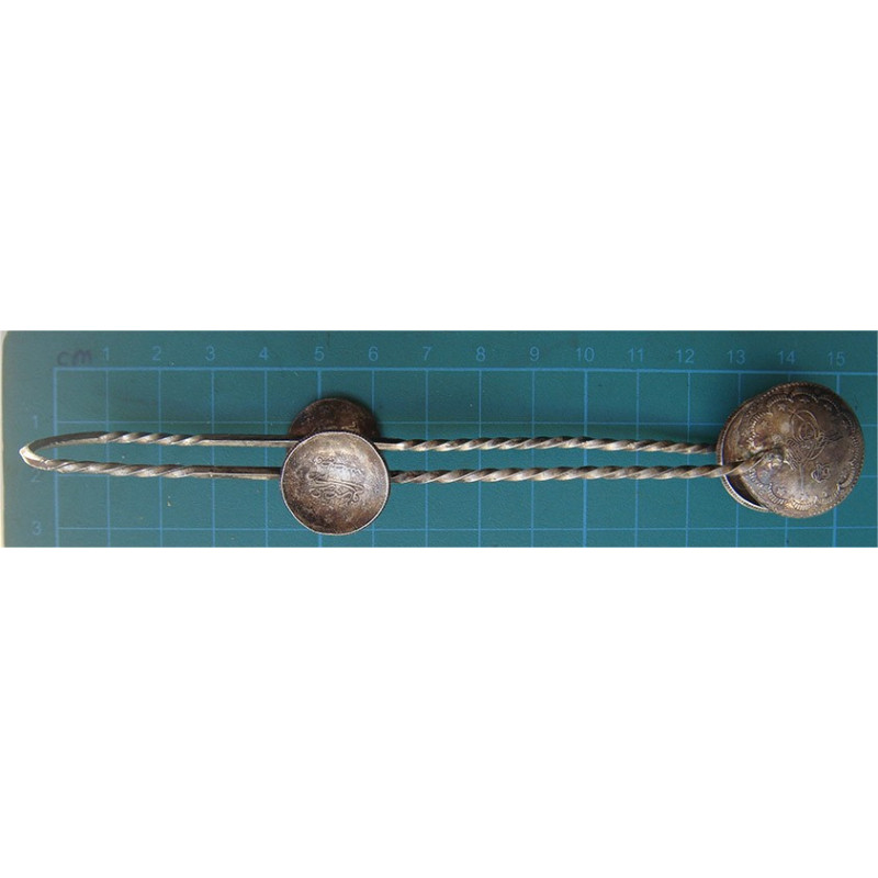 23,9 gramme, no silver markbut silver, Ottoman coins 5 kurush and 2 kurush used, lenght is 14,5 cm, coin diameter 2,3 ve 1,75 cm