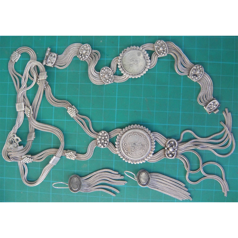 98,1 gramme, 925 K silver, necklace lenght 59 cm, coin diameter 2,3 cm, ottoman 5 kurush is used, bracelet lenght 12 cm, coin diameter 1,8 cm, ottoman 2 kurush is used