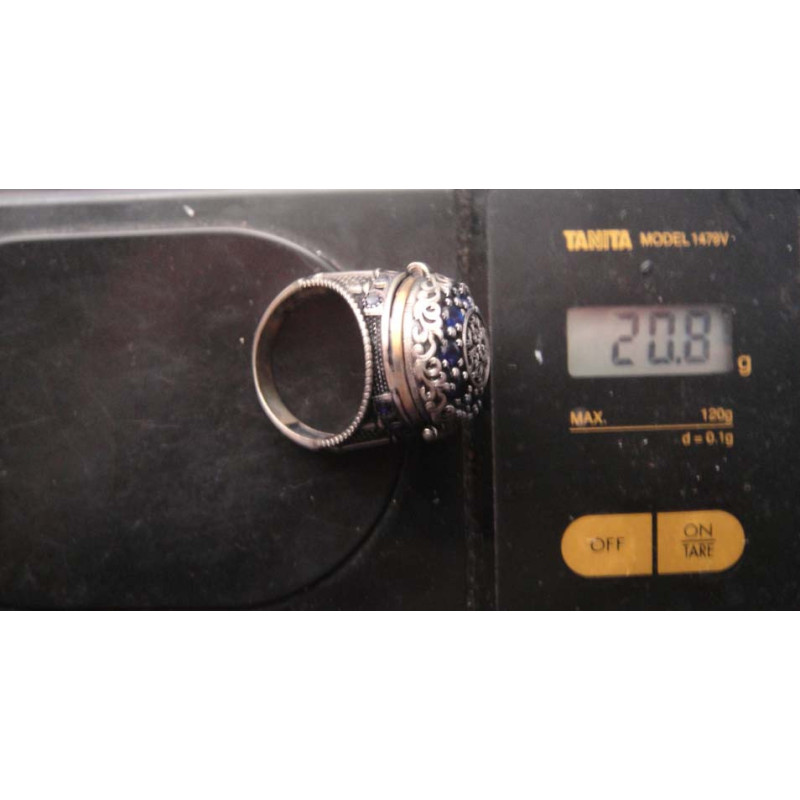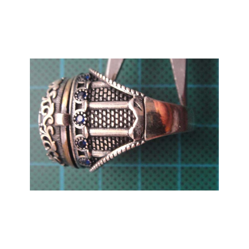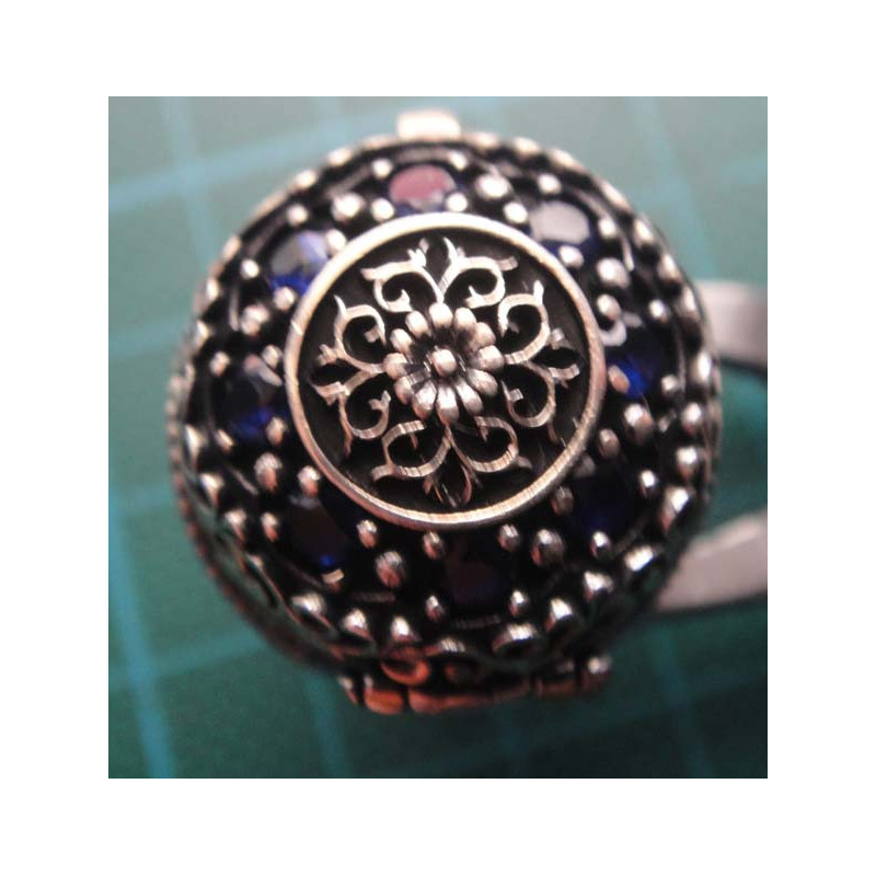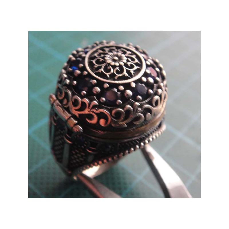 Ottoman style silver locket ring with blue and purple stones and floral medallion_1363