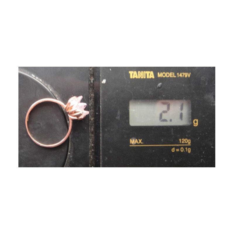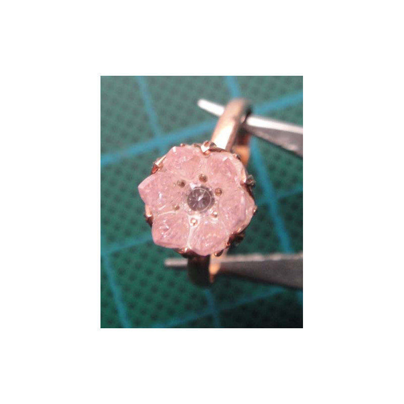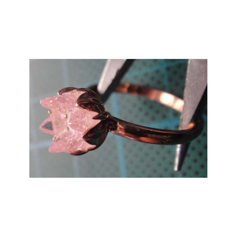 Rose gold colored solitaire silver ring with pink crystal flower stone_1396
