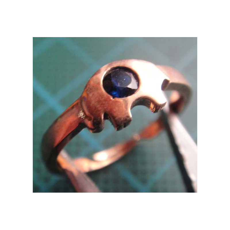 Gold colored elephant motif silver ring with blue stone_1399