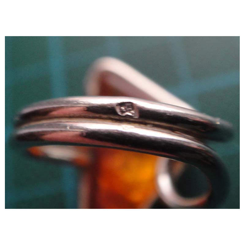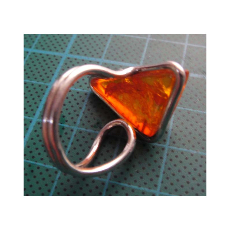 Triangle Amber Stone Silver Ring_1414