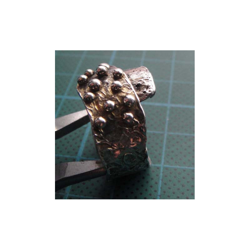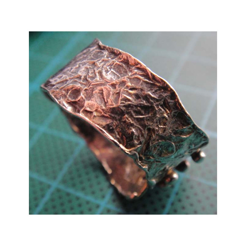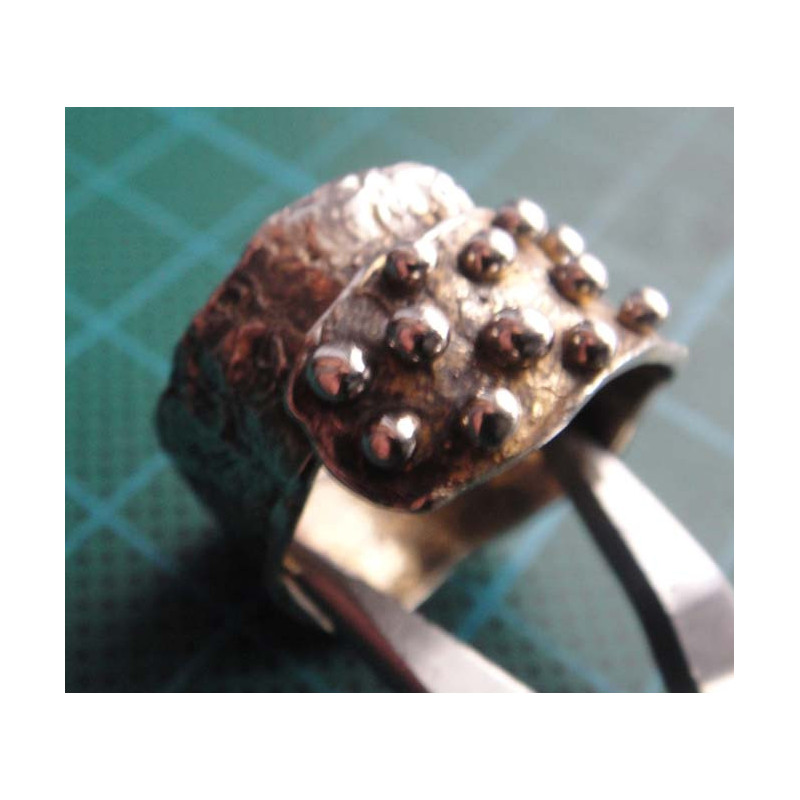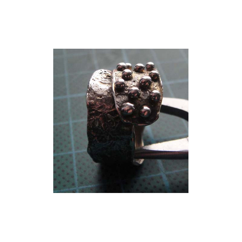 Granule & Hammered Wide Band Silver Ring_1418