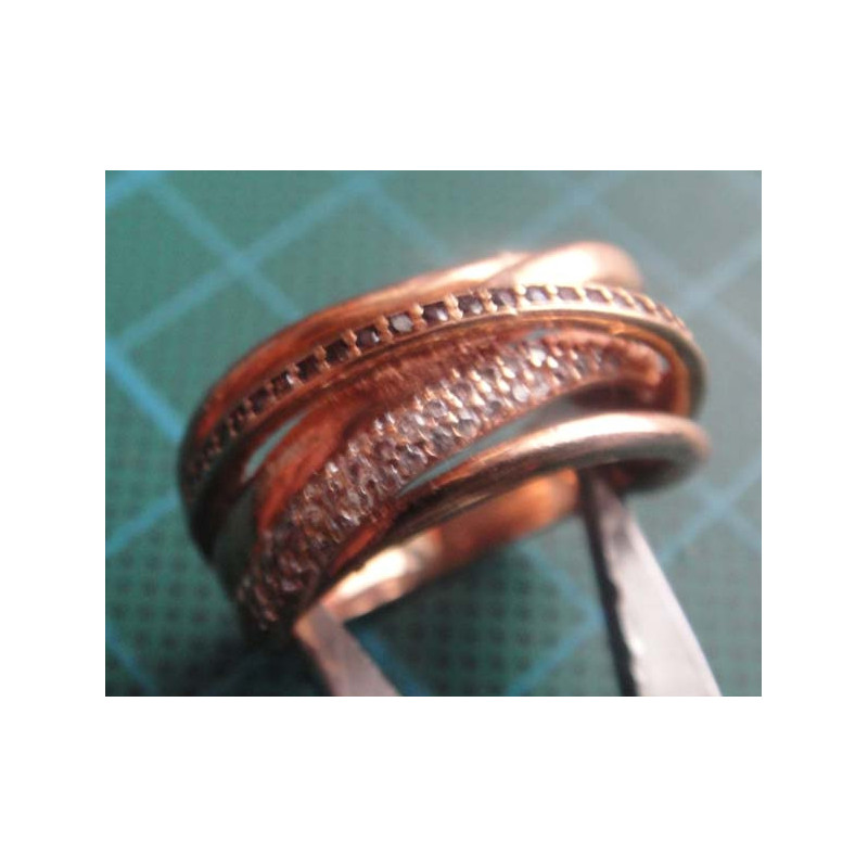 Crossover Spiral Zircon Gold Colored Silver Ring_1439