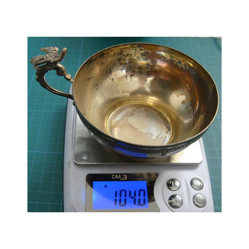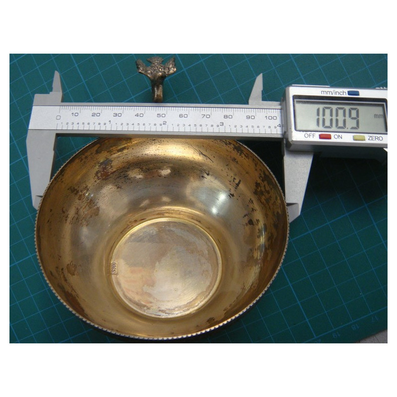 104 gram, 900 ayar gümüş, üst çap 10 cm, yükseklik 4,5 cm