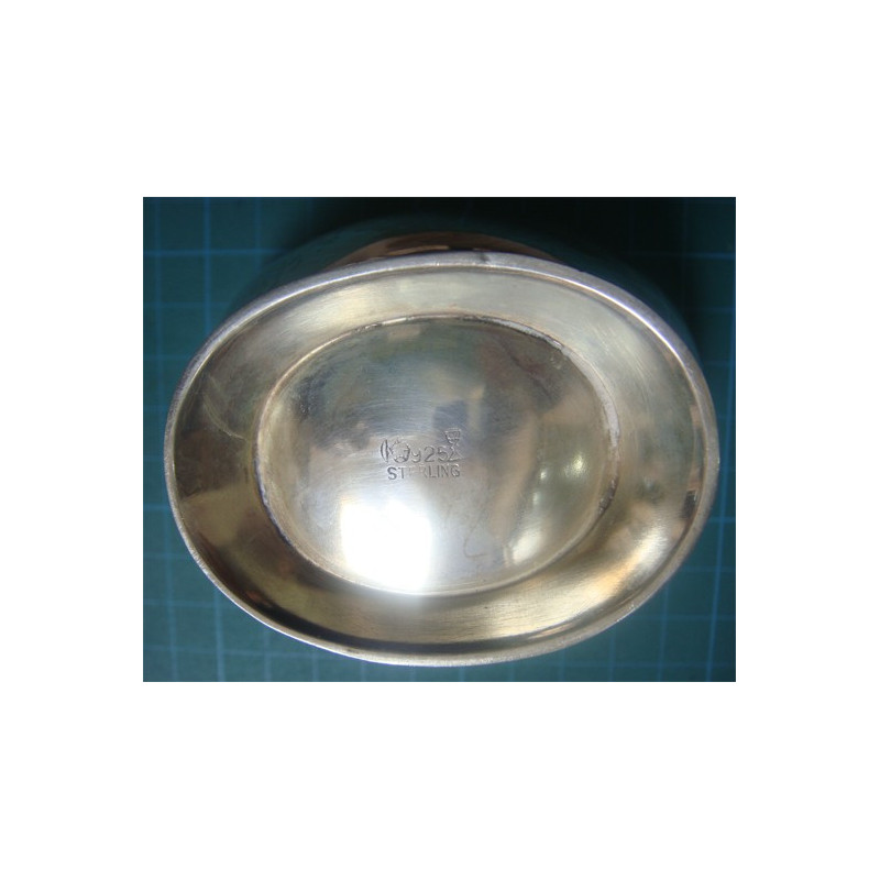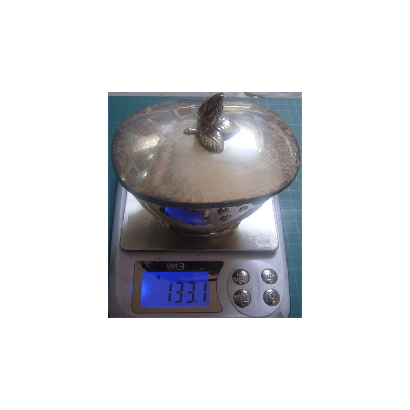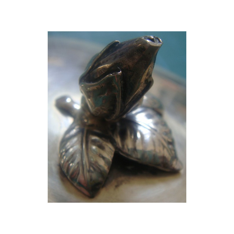 133,1 gram, 925 ayar Sterling gümüş damgalı, üst ölçüsü 7 x 9,25 cm, kapak dahil (çiçek hariç) yükseklik 6,9 cm