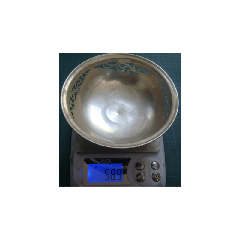 58,9 gram, 800 ayar gümüş, üst çap 12,1 cm, yükseklik 5,7 cm