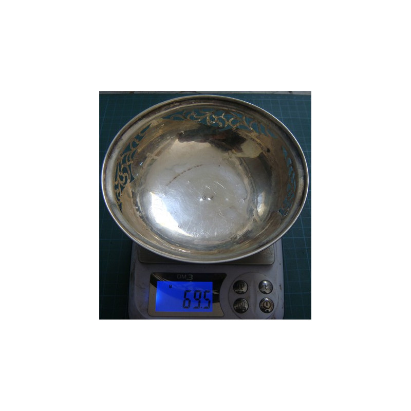 69,5 gram, 800 ayar gümüş, üst çap 13,3 cm, yükseklik 5,5 cm