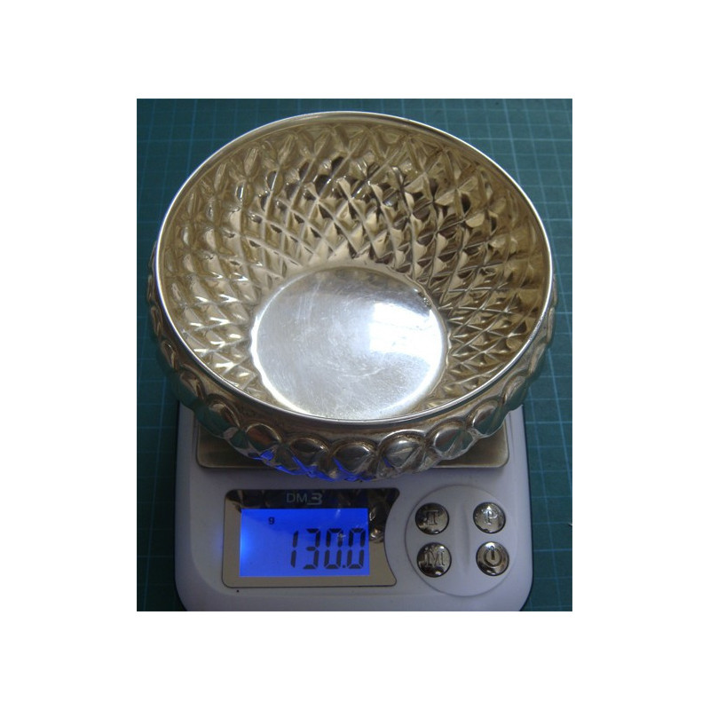 130 gram, 900 ayar gümüş, üst çap 11,7 cm, yükseklik 5 cm