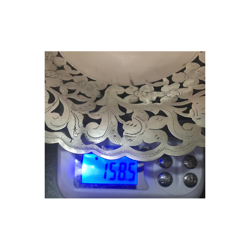 158,5 gram, 800 ayar gümüş, çap 21,5 cm, yükseklik 4 cm