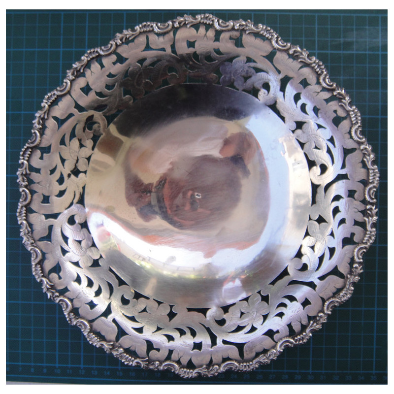 253,3 gram, 800 ayar gümüş, çap 25,5 cm, yükseklik 5,5 cm