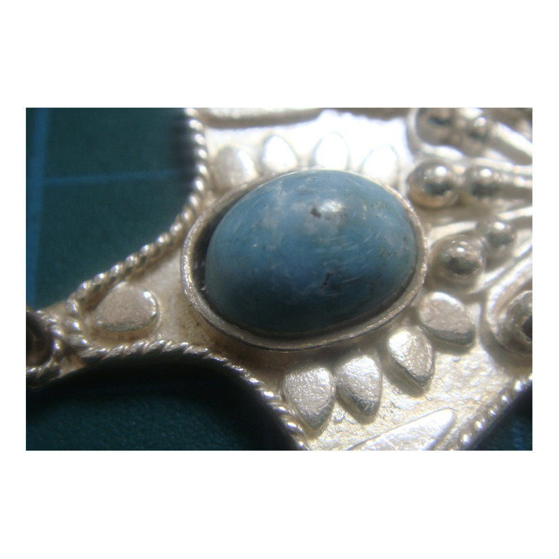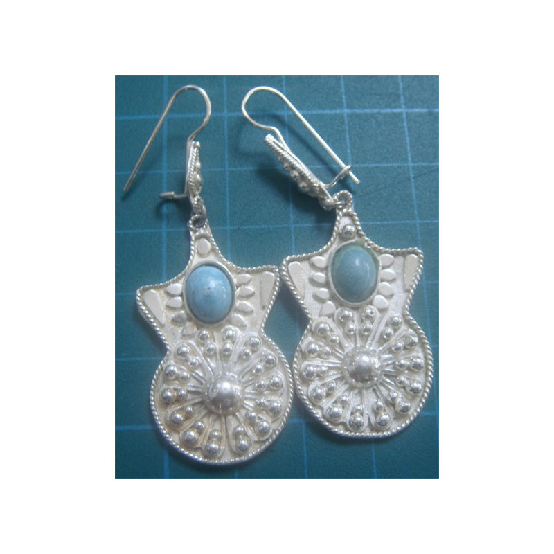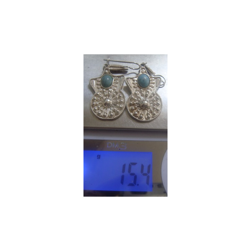 Turkuaz Taşlı El İşçilikli Gümüş Küpe_160