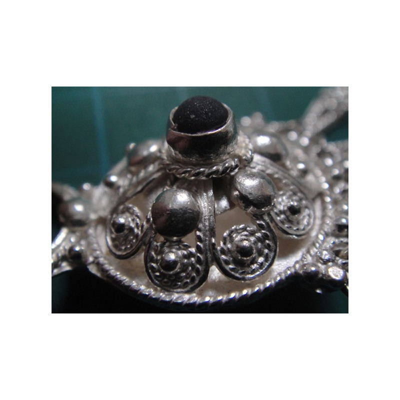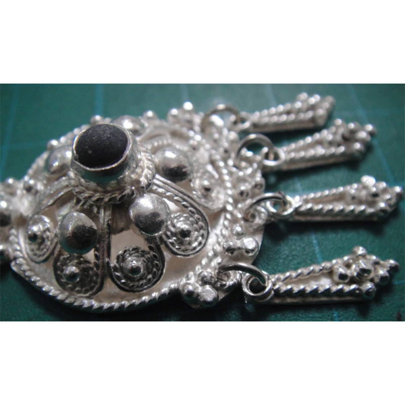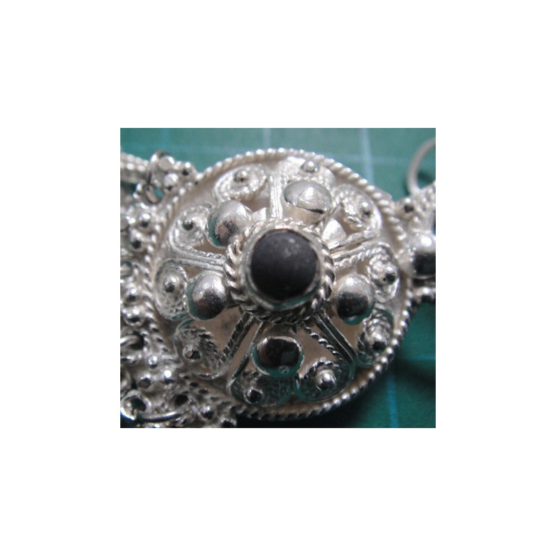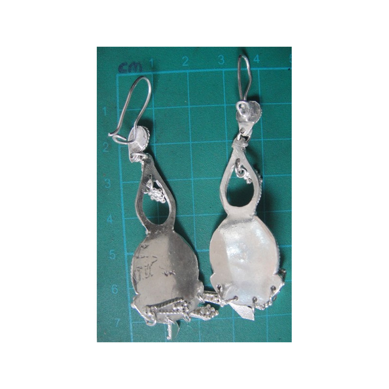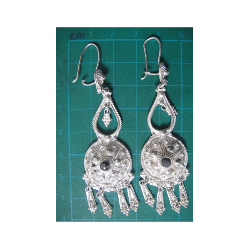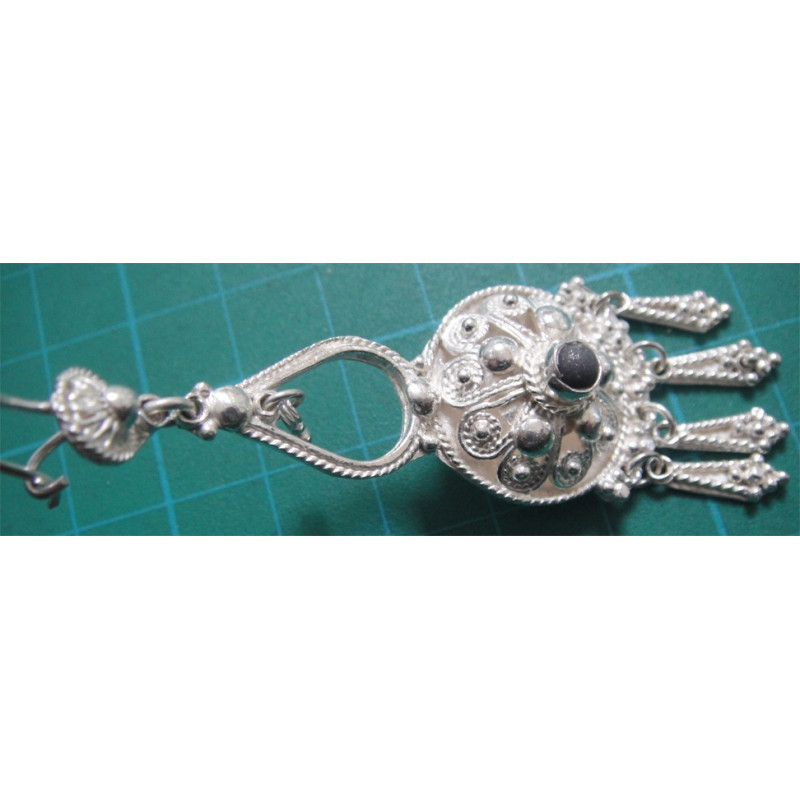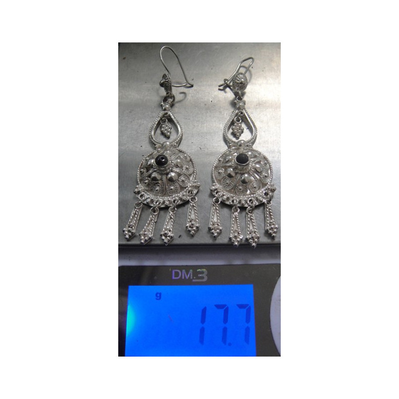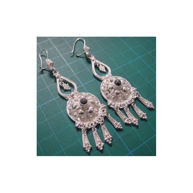Siyah Taşlı İşçilikli Gümüş Küpe_239