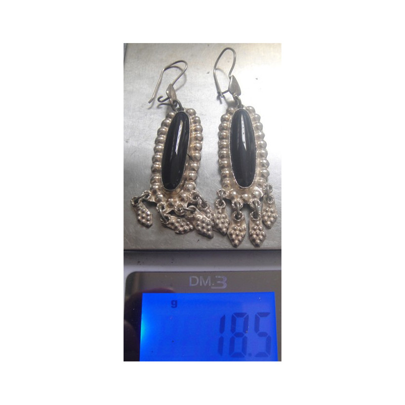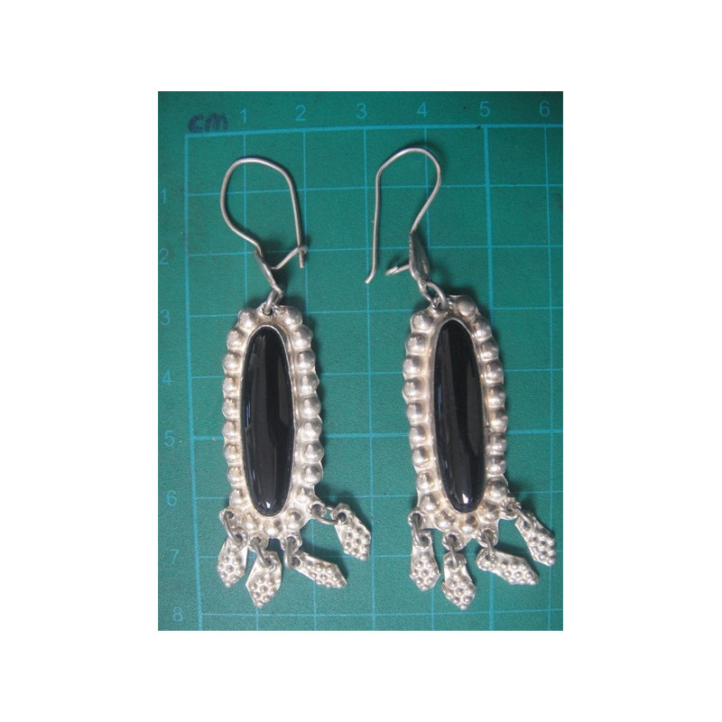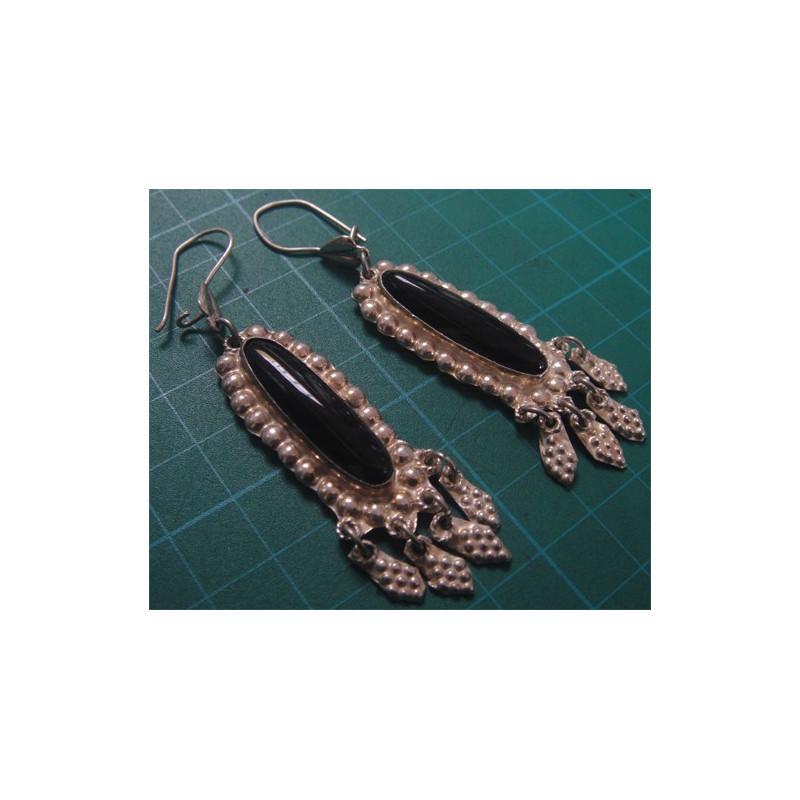 Siyah Taşlı Gümüş Küpe_243