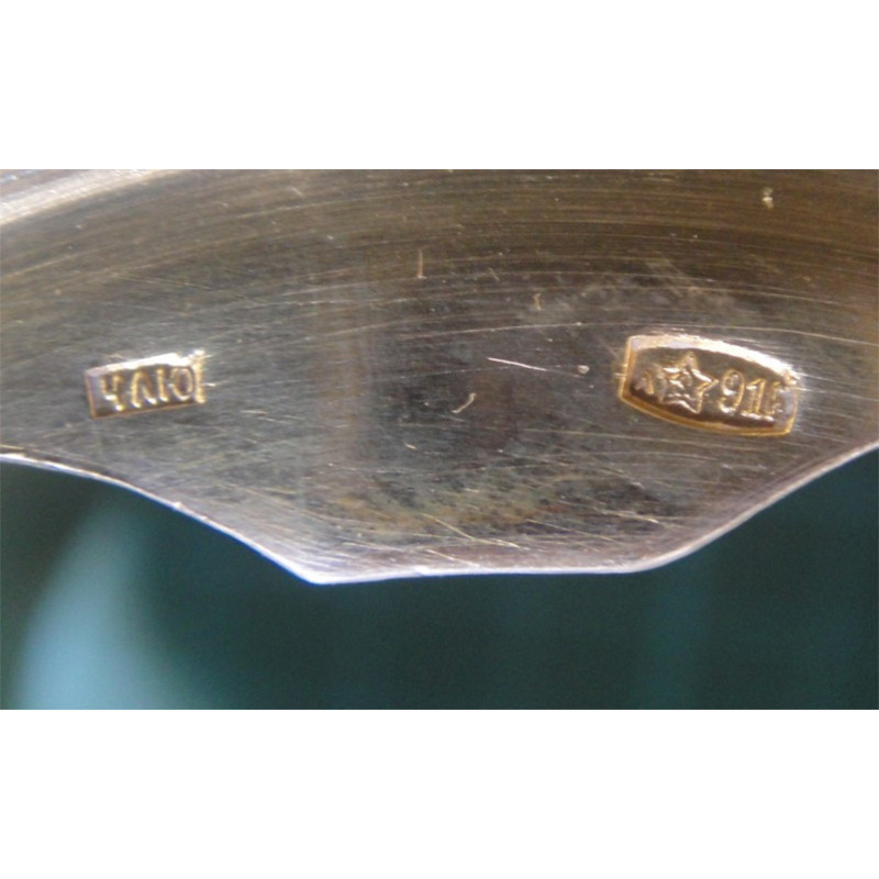 916 Damgalı Rus Mineli Gümüş Cam Bardak Altlığı_521
