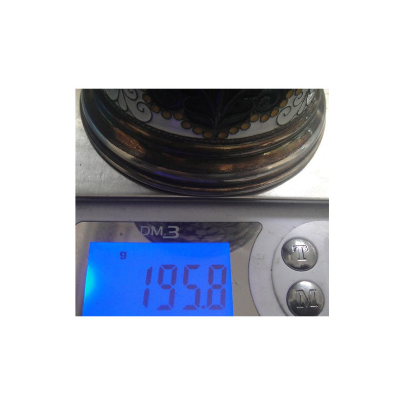 195,8 gram, yükseklik 8 cm, sap ile birlikte yükseklik 10 cm, üst çap 7 cm