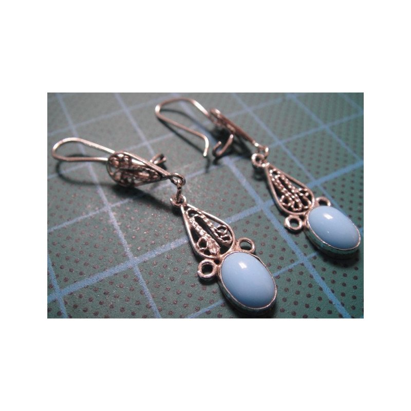 Mavi Taşlı Telkari İşçilikli Gümüş Küpe_259