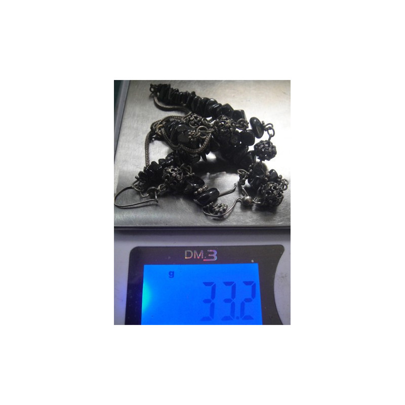 Siyah Doğal Gümüş Taşlı Kolye ve Küpe_258