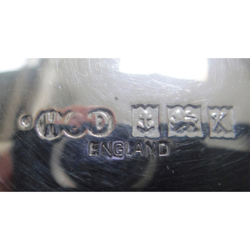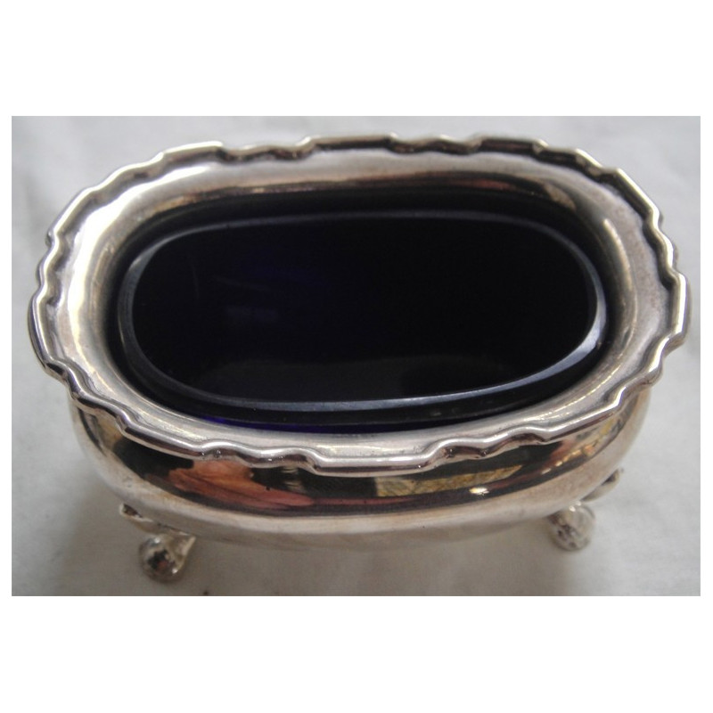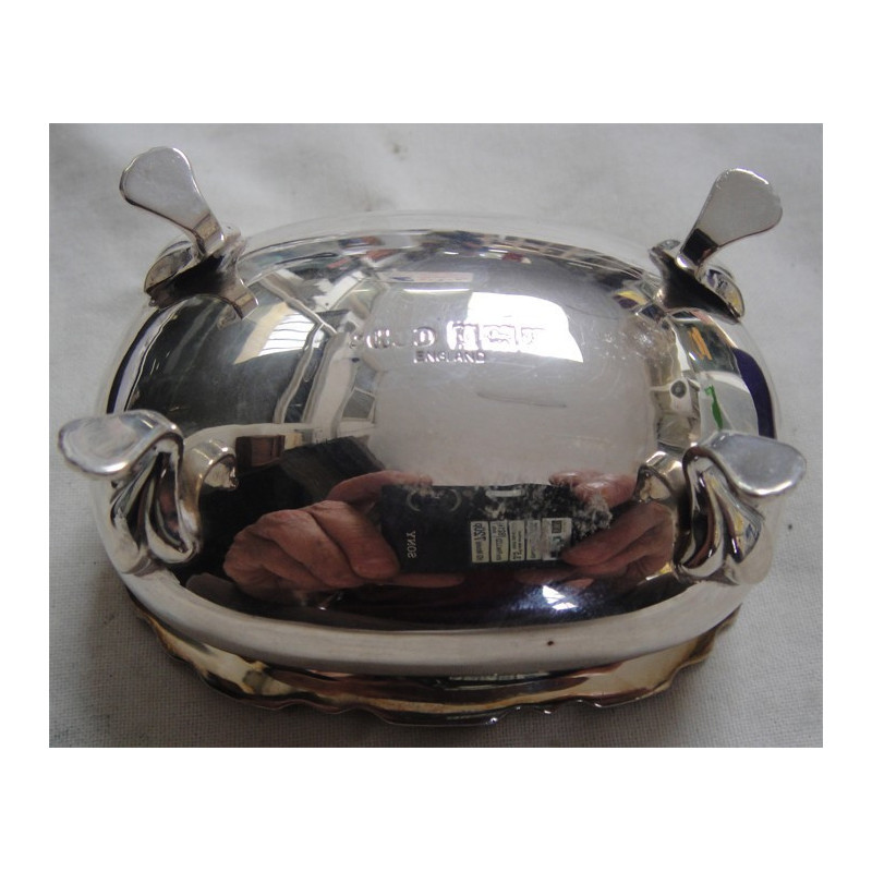 44,1 gram, İngiliz damgalı gümüş, üst ölçü 5,2 x 7 cm, yükseklik 3,8 cm, cam havyarlık iç ölçü 2,85 x 4,8 cm