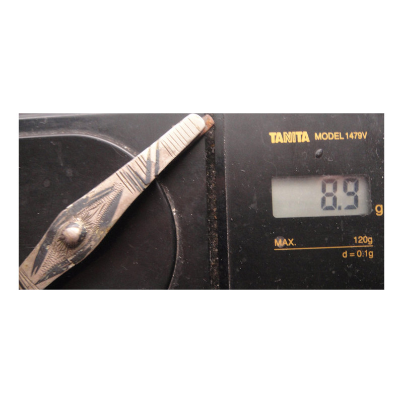8,9 gram, savatlı gümüş, klips kısmı gümüş değildir, 8,5 x 1,2 cm