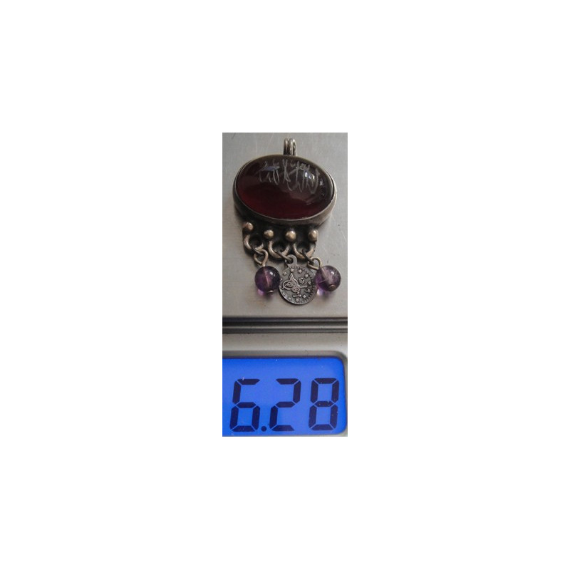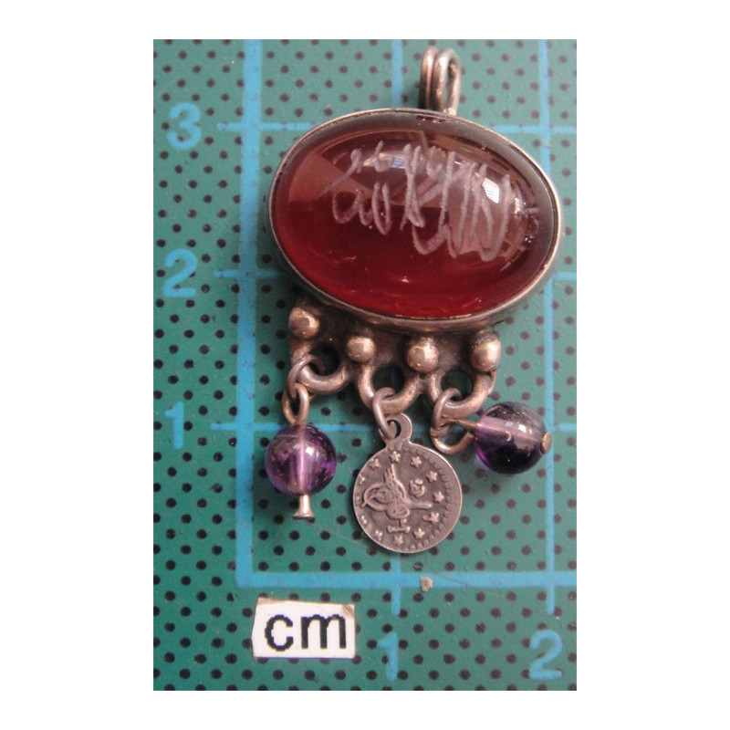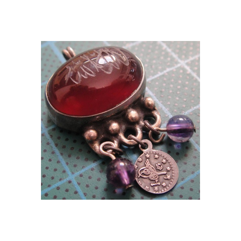 Akik Taşlı Dini Yazılı Gümüş Kolye Ucu_1004