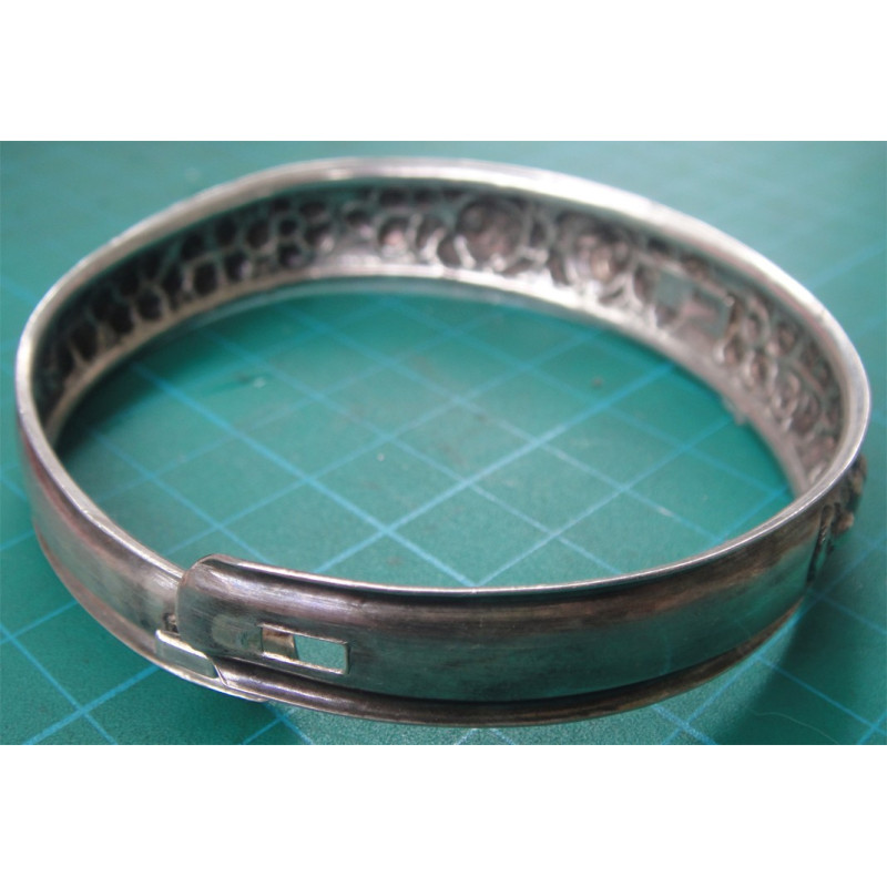 14,4 gram, 900 ayar gümüştür, iç çap 6,3 cm, üst en 1,5 cm
