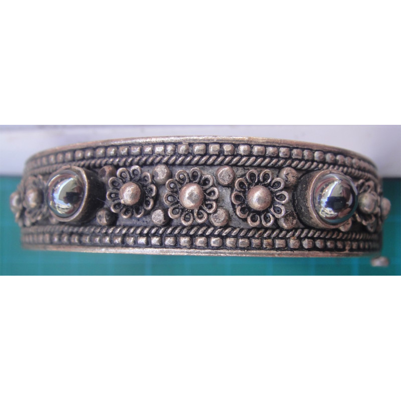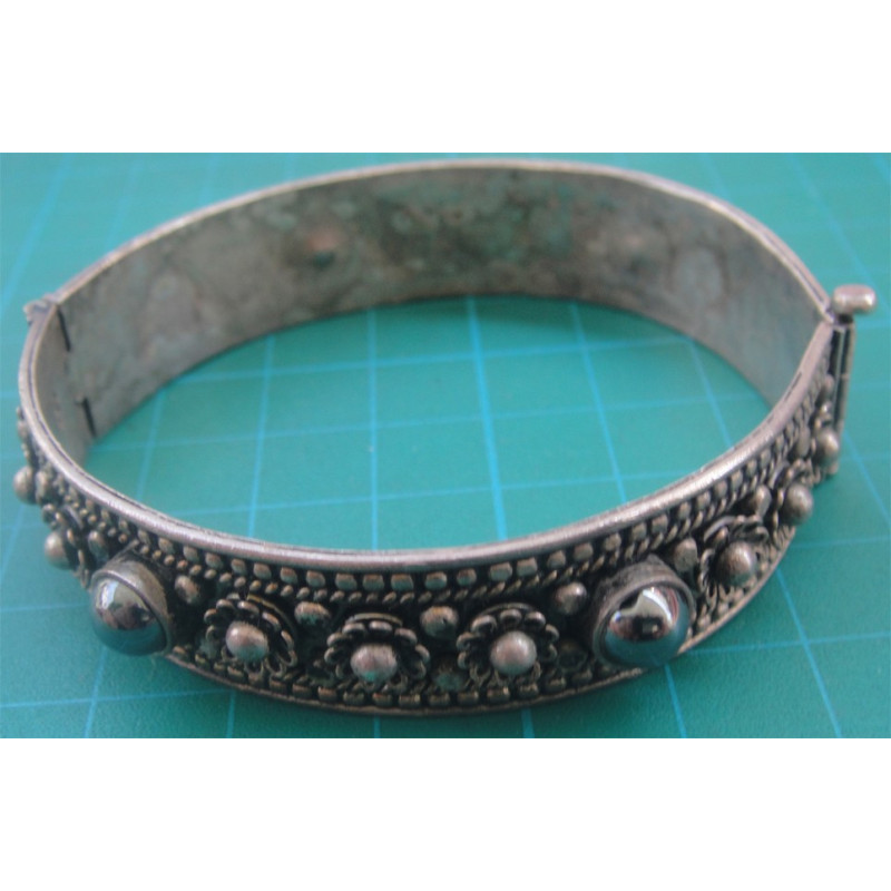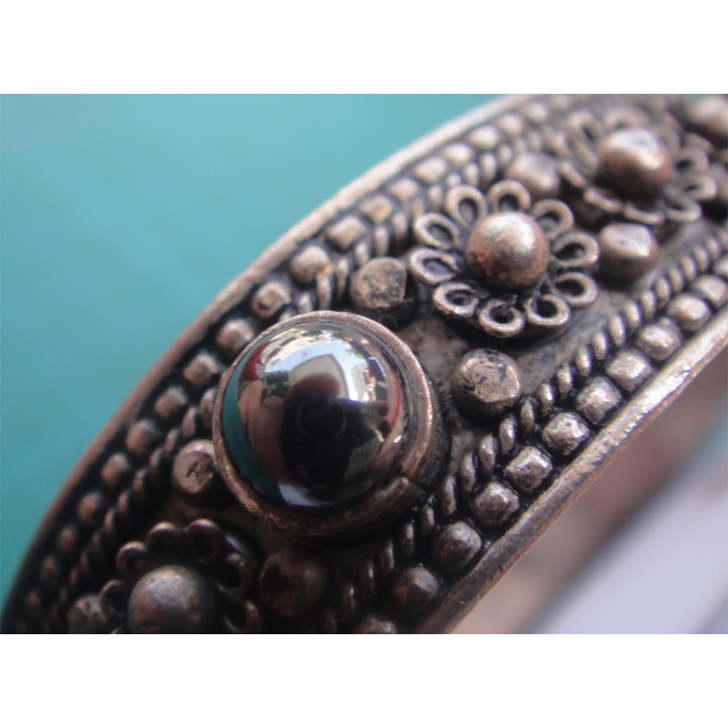 Güverse İşçilikli Hematit Taşlı Gümüş Bileklik_451
