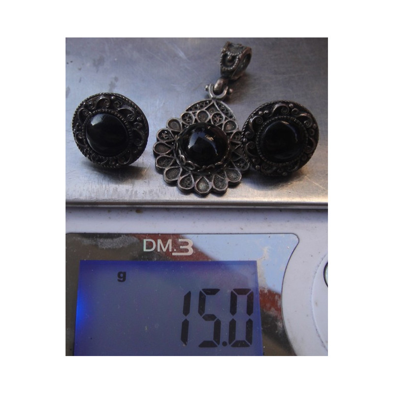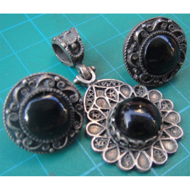 Oltu Taşlı Gümüş Küpe ve Kolye Ucu_276