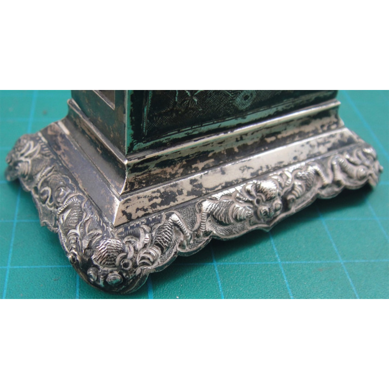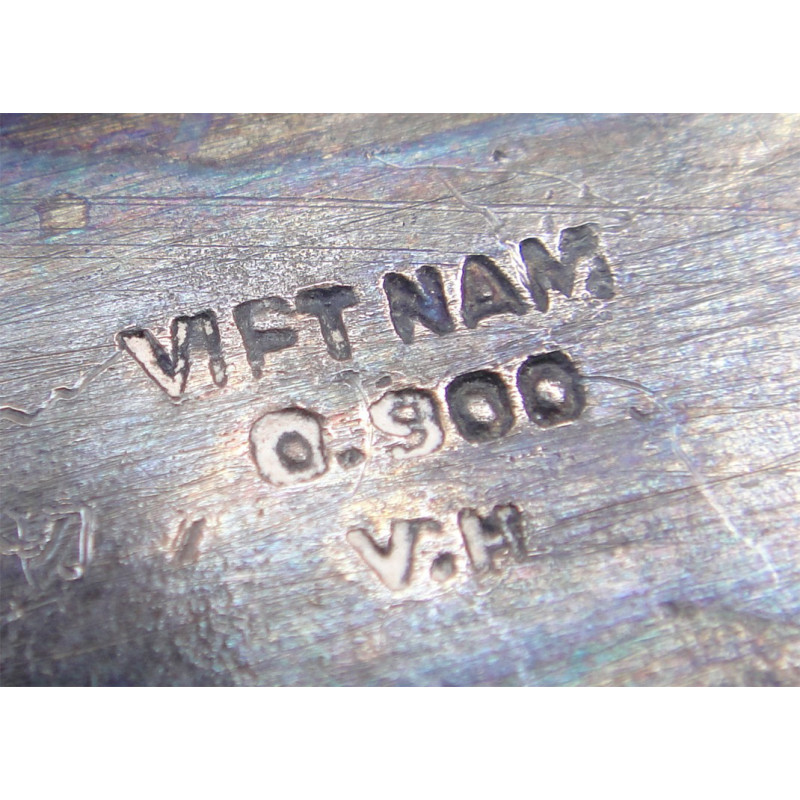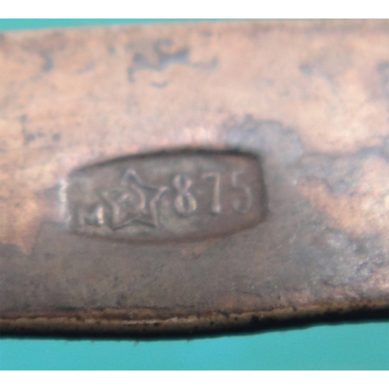 35,9 gram, bir tarafında orak çekiçli 975 damga altında ise 900 ayar gümüş damgası mevcuttur, 4 x 1,9 cm, yükseklik 7,5 cm