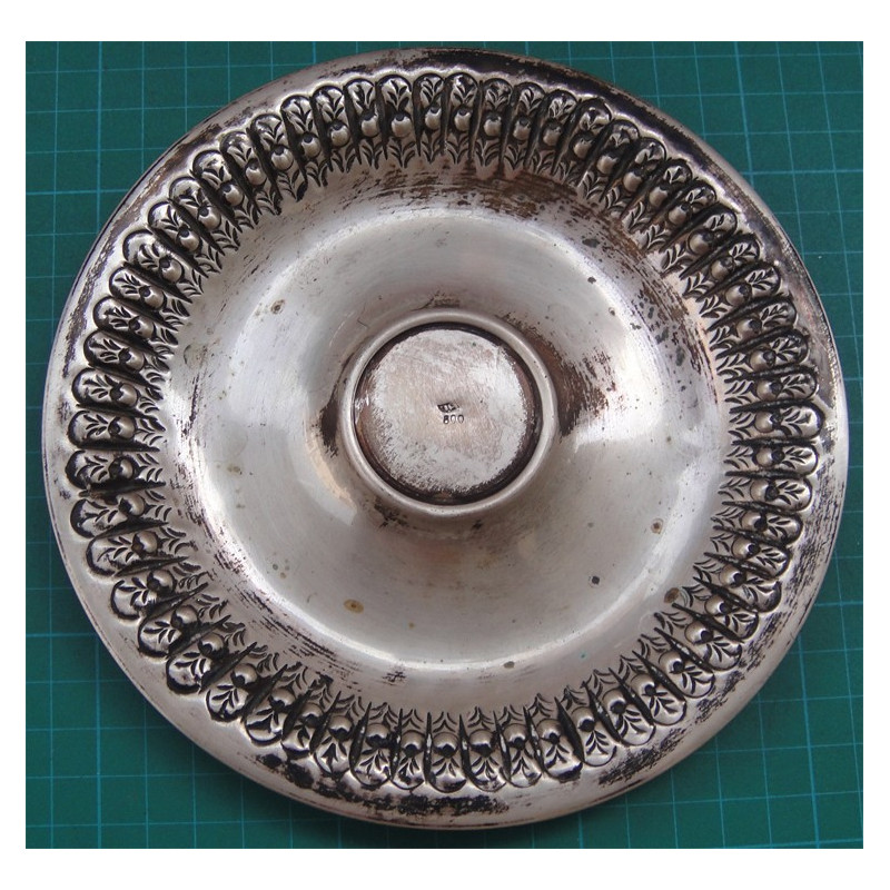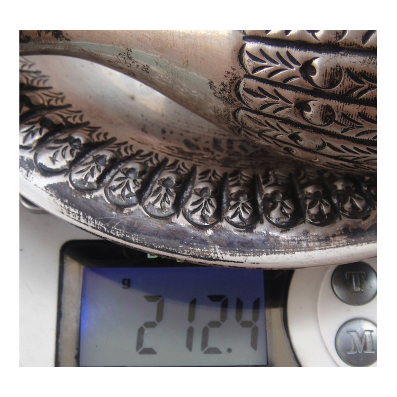 212,4 gram, 800 ayar gümüş, yükseklik 14 cm, tabak çap 17 cm