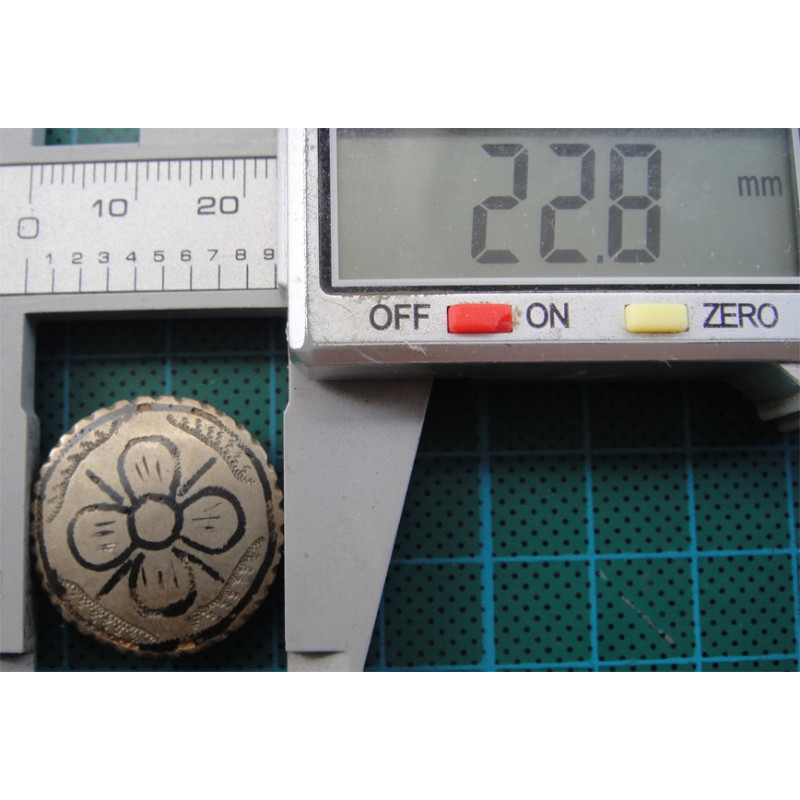 11,1 gram, gümüş damgası yok ancak test ettim gümüş, çapları 21 ile 21.4 mm arasındadır