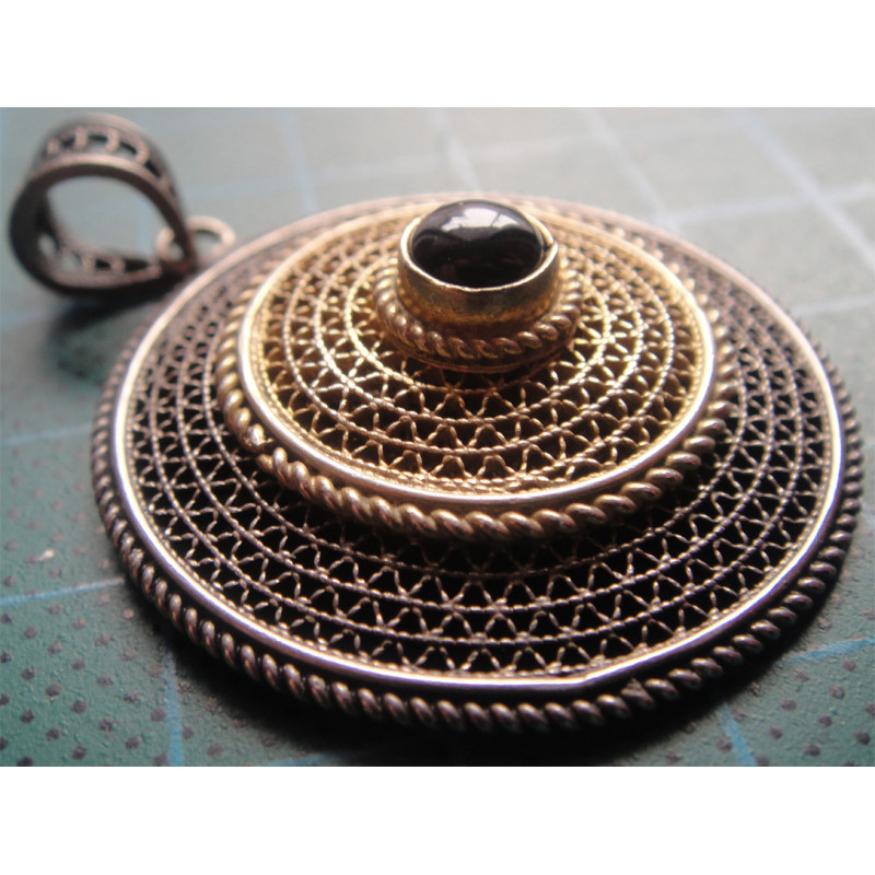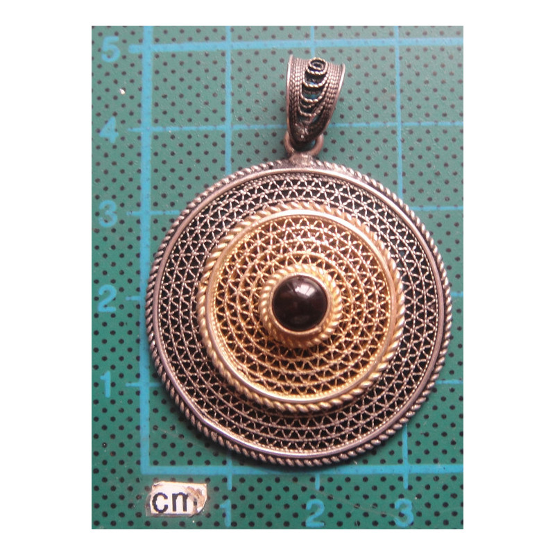 Siyah Taşlı Telkari Gümüş Kolye Ucu_1477
