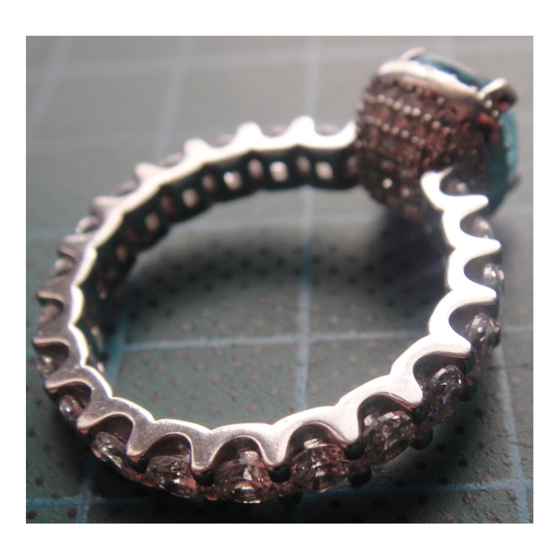 5,6 gram, 925 ayar gümüş, ölçüsü 17,5 numara, tüm çevre zirkon taşlıdır.