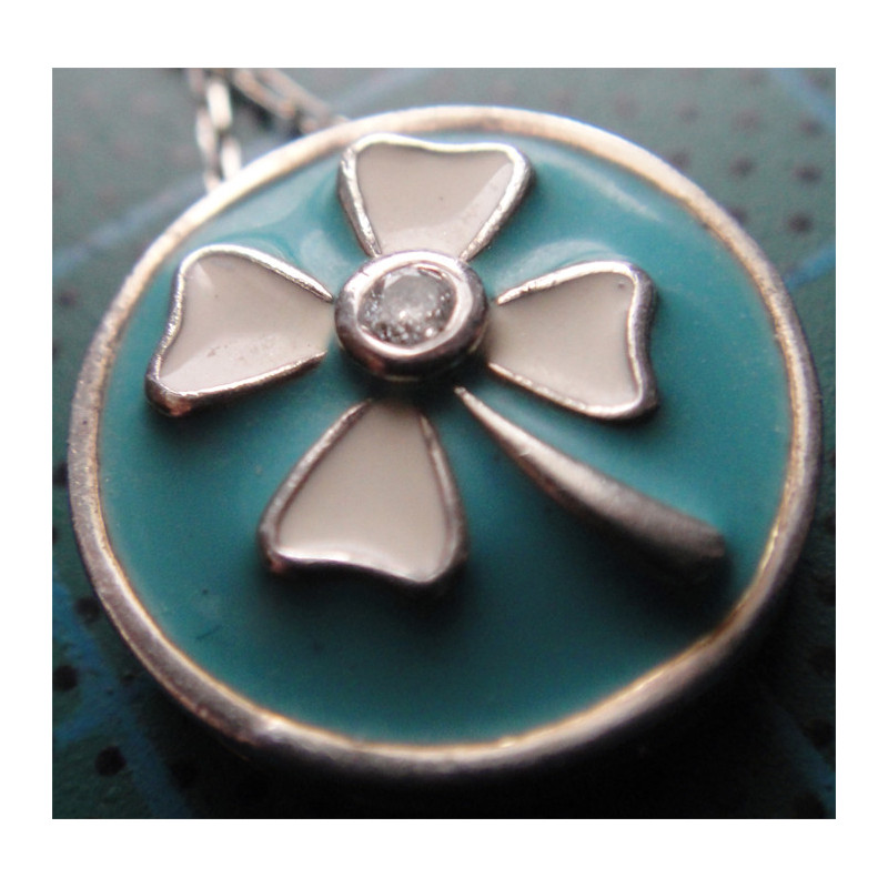 Mineli 4 yapraklı Yonca Gümüş Kolye Ucu_1513