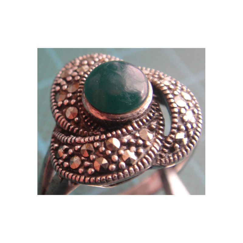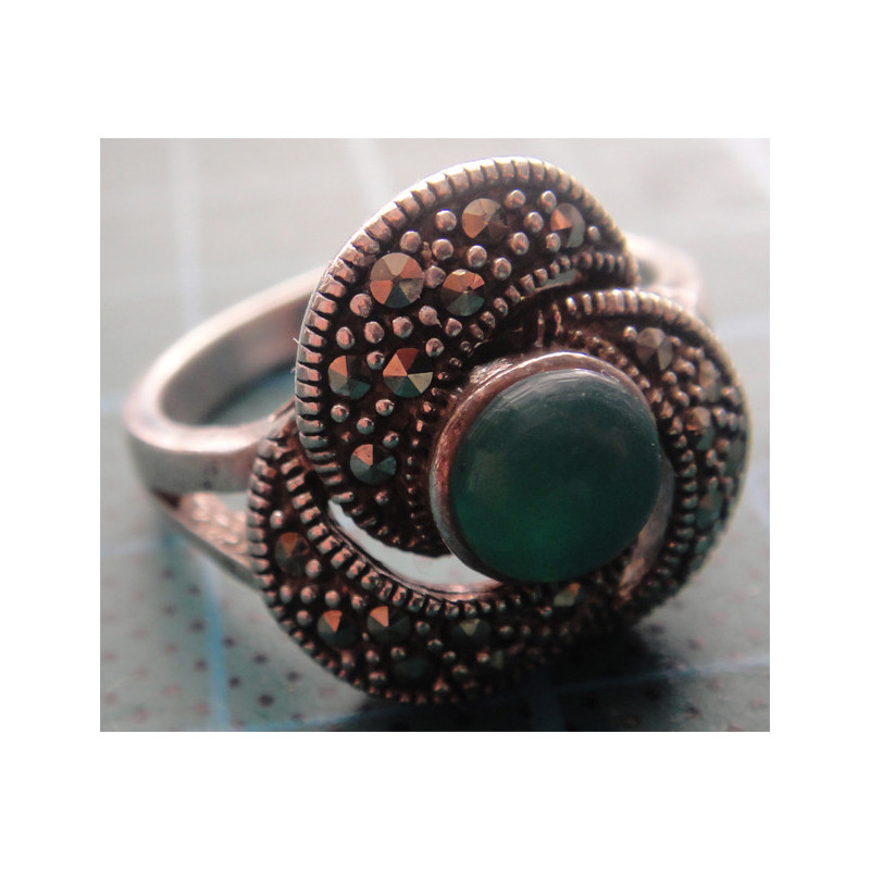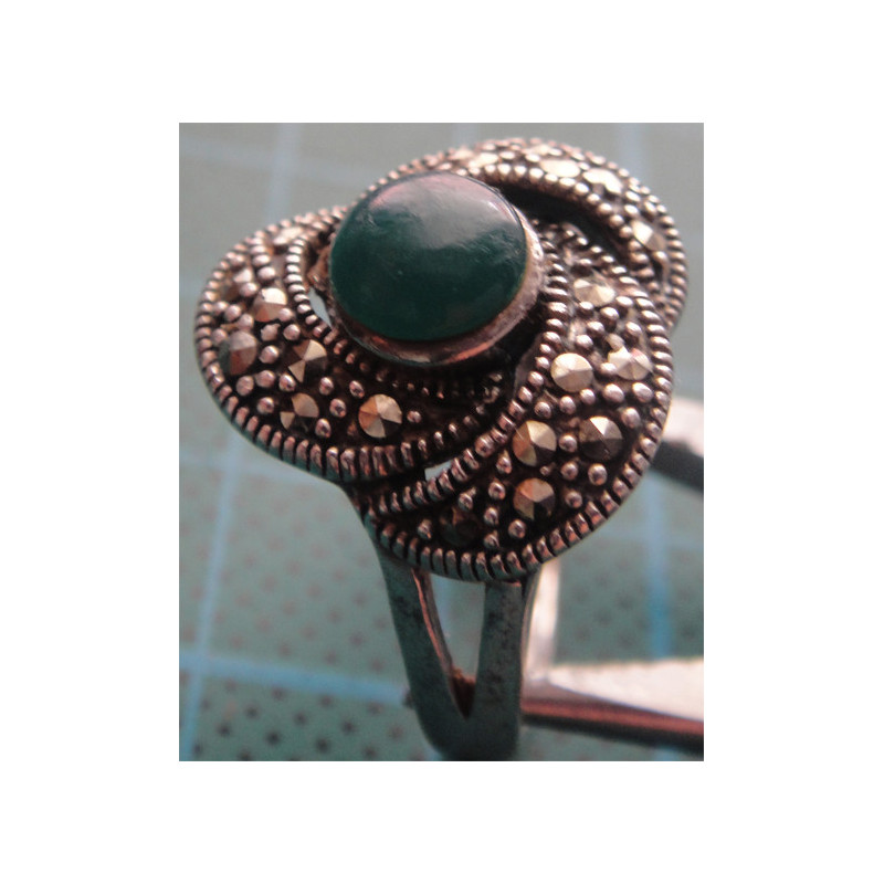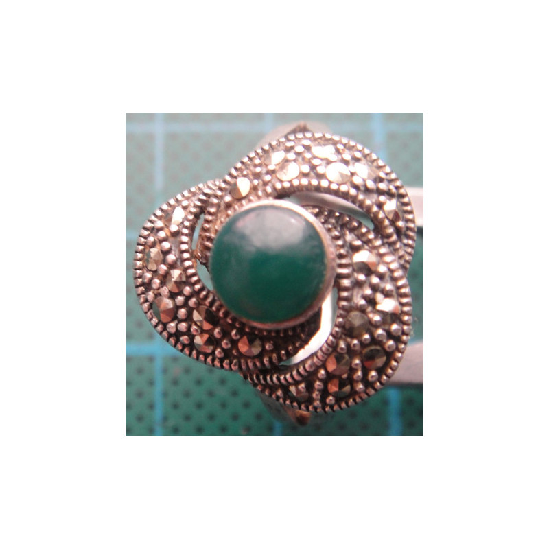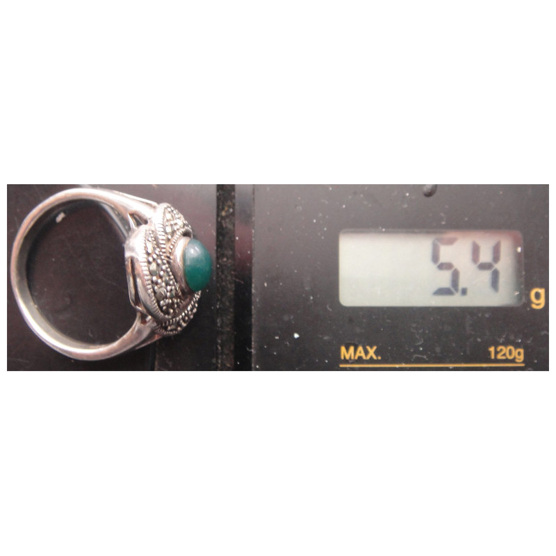 5,4 gram, 925 ayar gümüş, taşın rengi yeşil olup ölçüsü 18 numara
