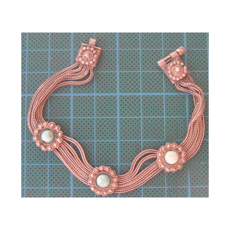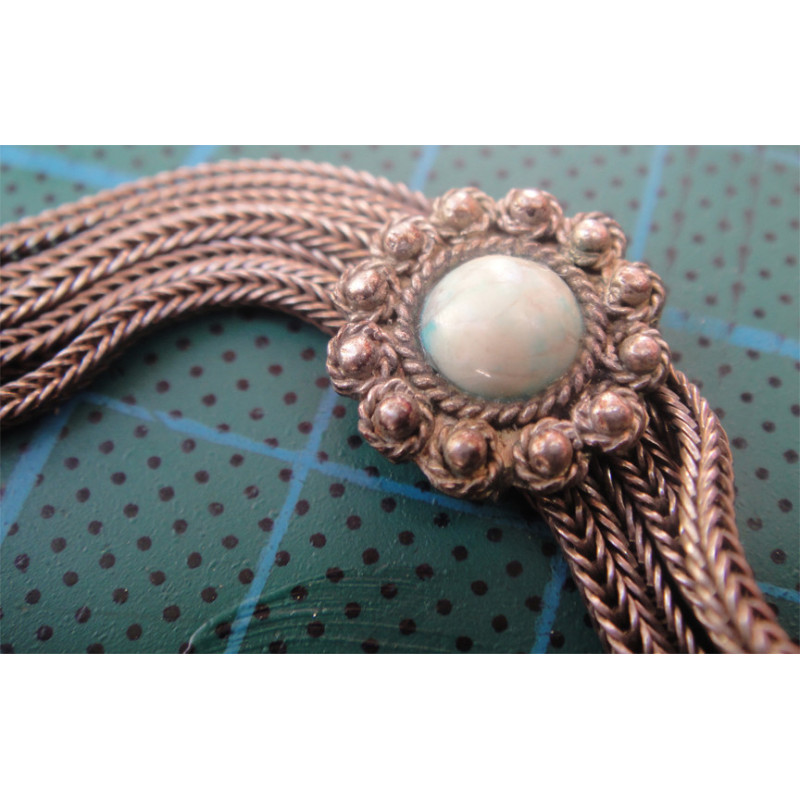 Turkuaz Taşlı Antika Tilki Kuyruk Zincirli Gümüş Bileklik_576