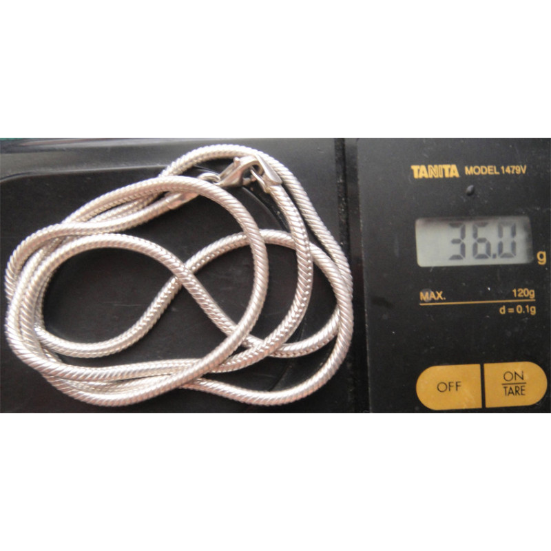36 gram, 925 ayar gümüştür, zincir uzunluk 66 cm, cep saati köstek zinciri olarak da kullanılabilir