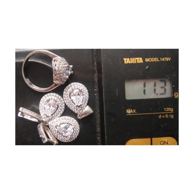 Zirkon Taşlı Gümüş Küpe, Kolye Ucu ve Yüzük Set_354