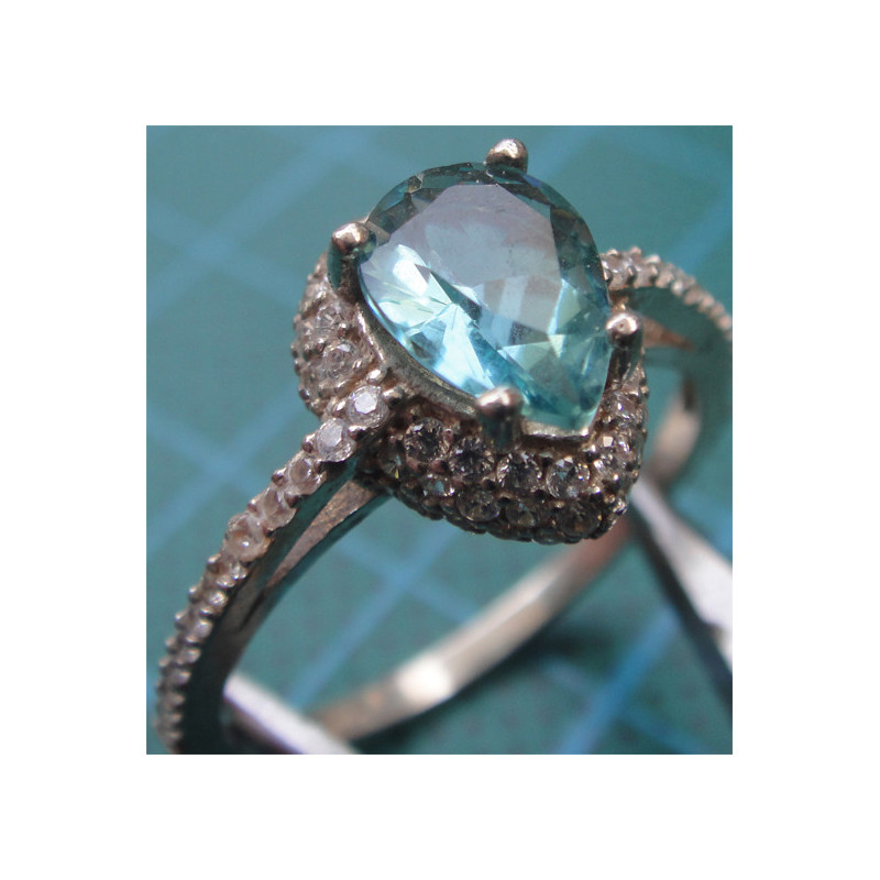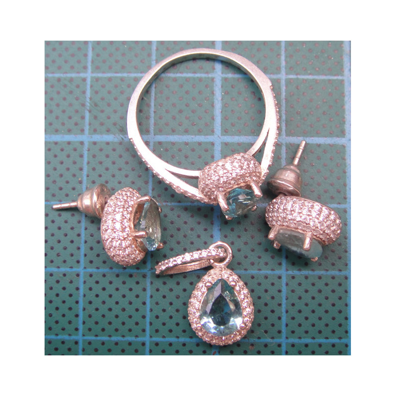 Mavi Topaz Gümüş Küpe, Kolye Ucu ve Yüzük Set_355