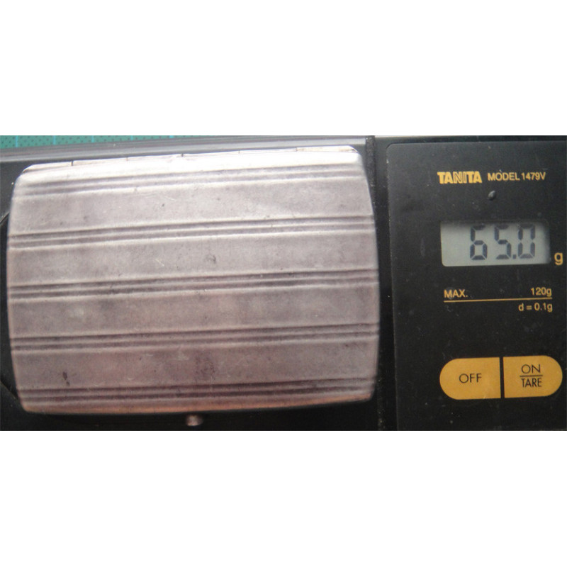 65 gram, 800 ayar gümüş, boy 8 x en 5,5 cm. basma yeri ile birlikte en 6 cm. Kalınlık 0,8 cm. kartvizitlik olarak kullanılabilir. Sarma sigara kağıdı kabı olarak kullanılabilir.