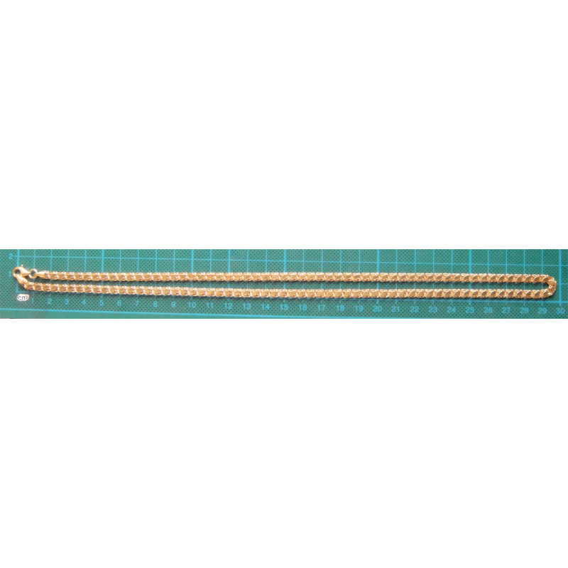23,3 gram, 925 ayar gümüştür, altın suyuna batırılmış, zincir uzunluk 58 cm, eni 5mm