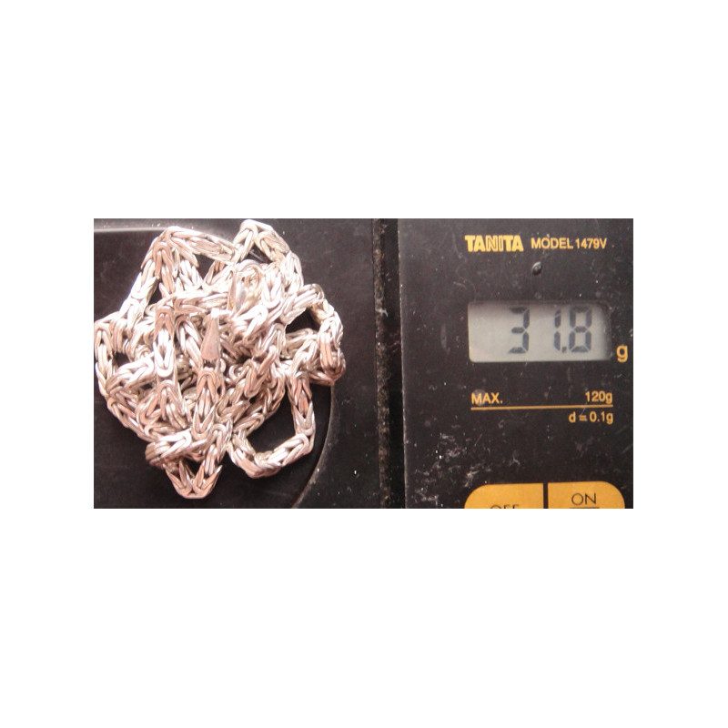 31,8 gram, 925 ayar gümüştür, zincir uzunluk 61 cm