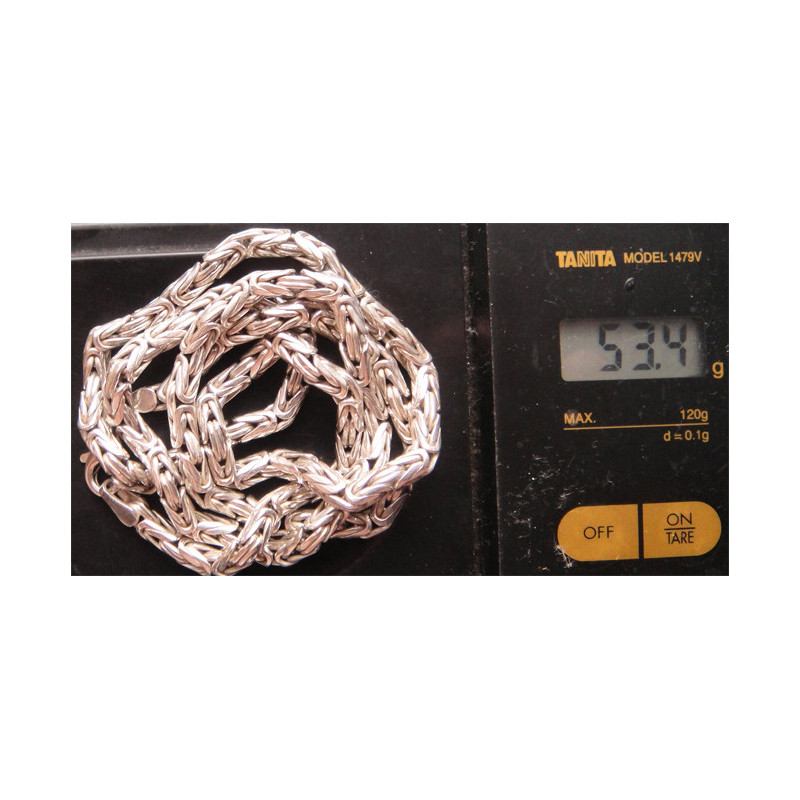 53,4 gram, 925 ayar gümüştür, zincir uzunluk 61 cm