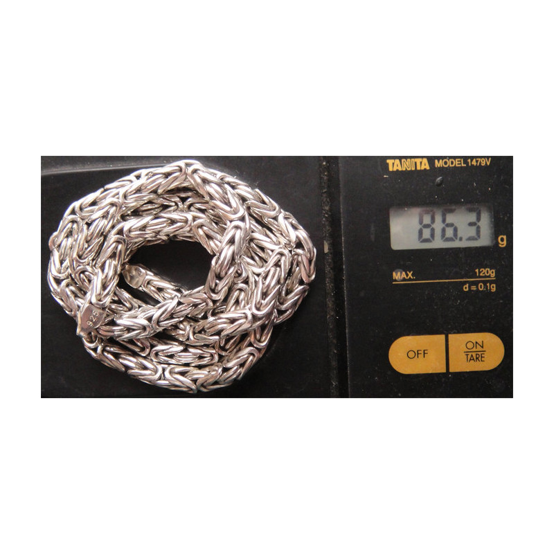 86,3 gram, 925 ayar gümüştür, zincir uzunluk 65 cm, eni 5 mm