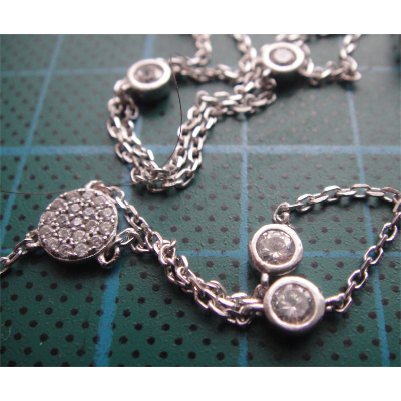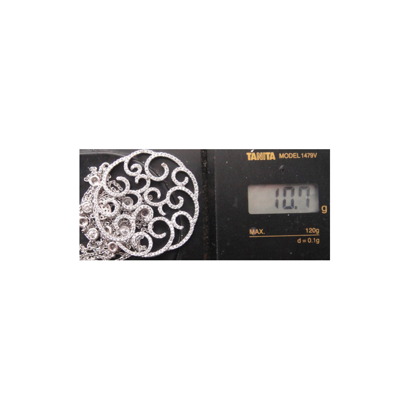 10,7 gram, 925 ayar gümüştür, zincir uzunluk 75 cm, kilitsiz olup zincir baştan geçirilmektedir