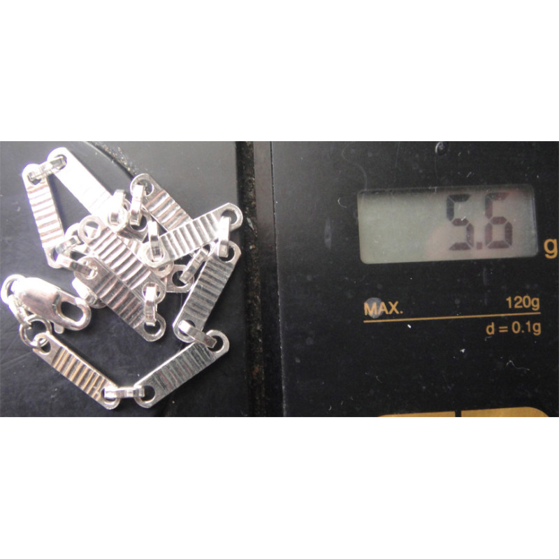 5,6 gram, 925 ayar gümüş, uzunluk 22,5 cm, eni 5 mm
