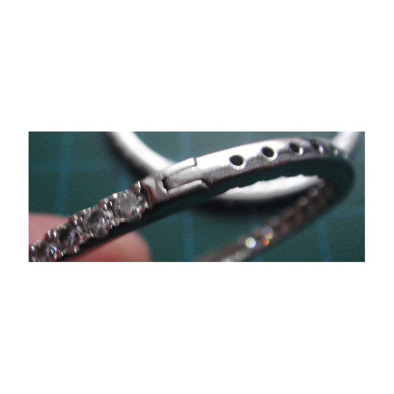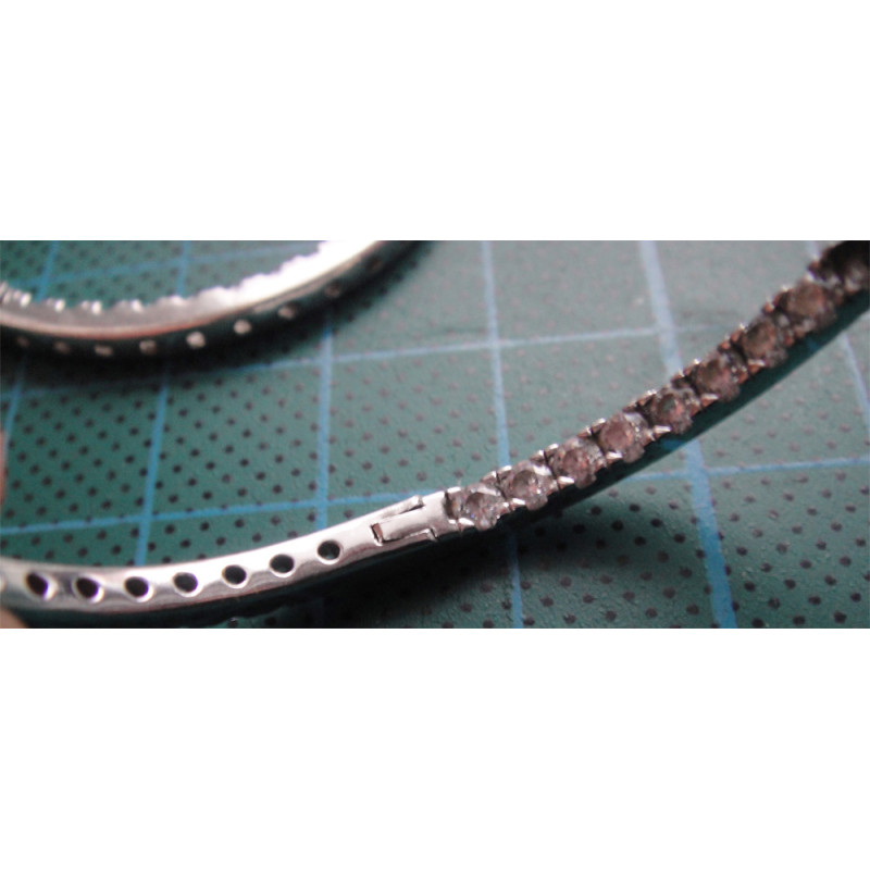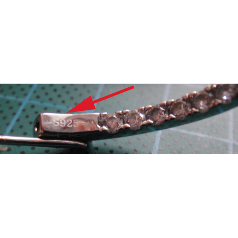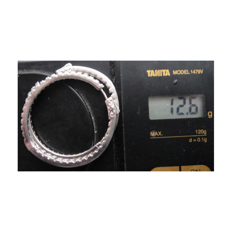 12,6 gram, 925 ayar gümüştür, dış kısmın yarısı ve iç kısmın zıt yarısı zirkon taşlıdır