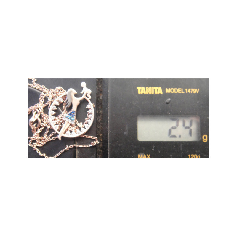 2,4 gram, 925 ayar gümüştür, altın suyuna batırılmış olup zincir uzunluğu 46 cm dir