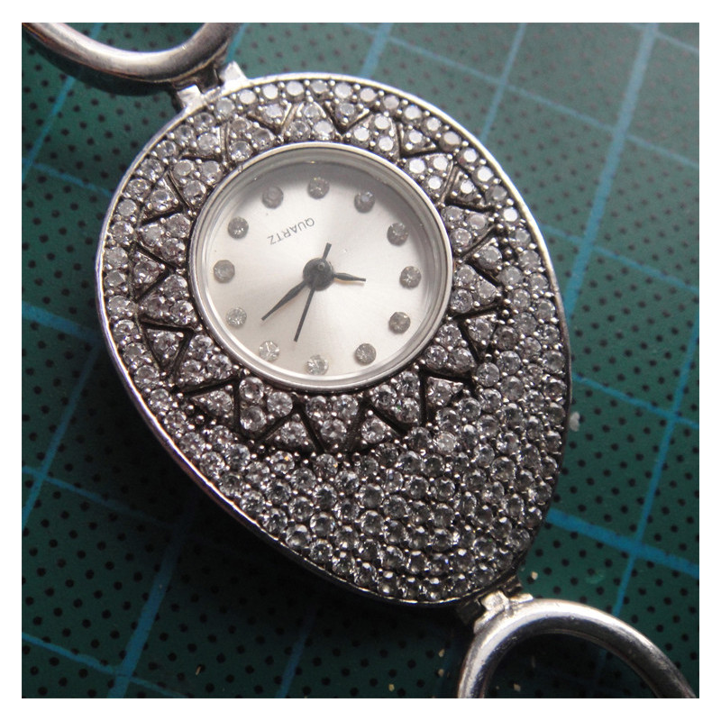 33,7 gram, 925 ayar gümüş, pilli, çalışır vaziyette, pili değişmesi lazım, uzunluk 18 cm, ölçüsü 2,9 x 4 cm