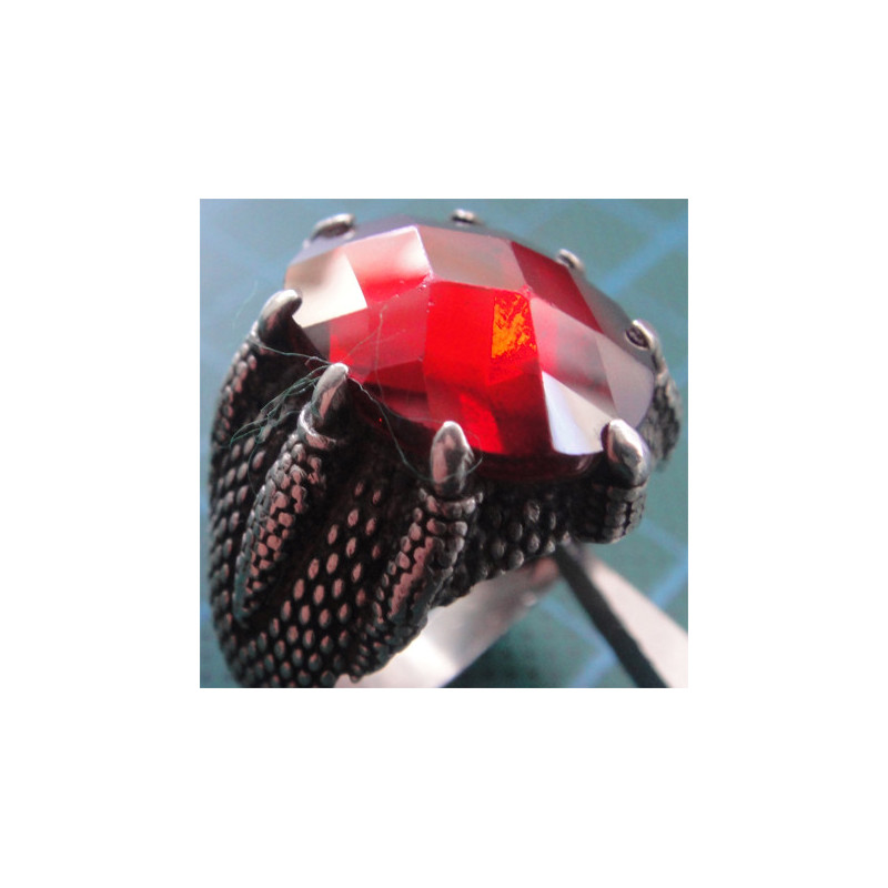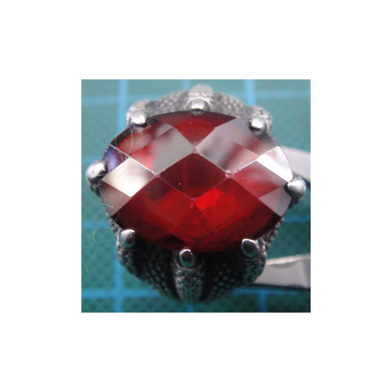 Pençeli Kırmızı Taşlı Gümüş Erkek Yüzük_1333